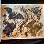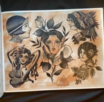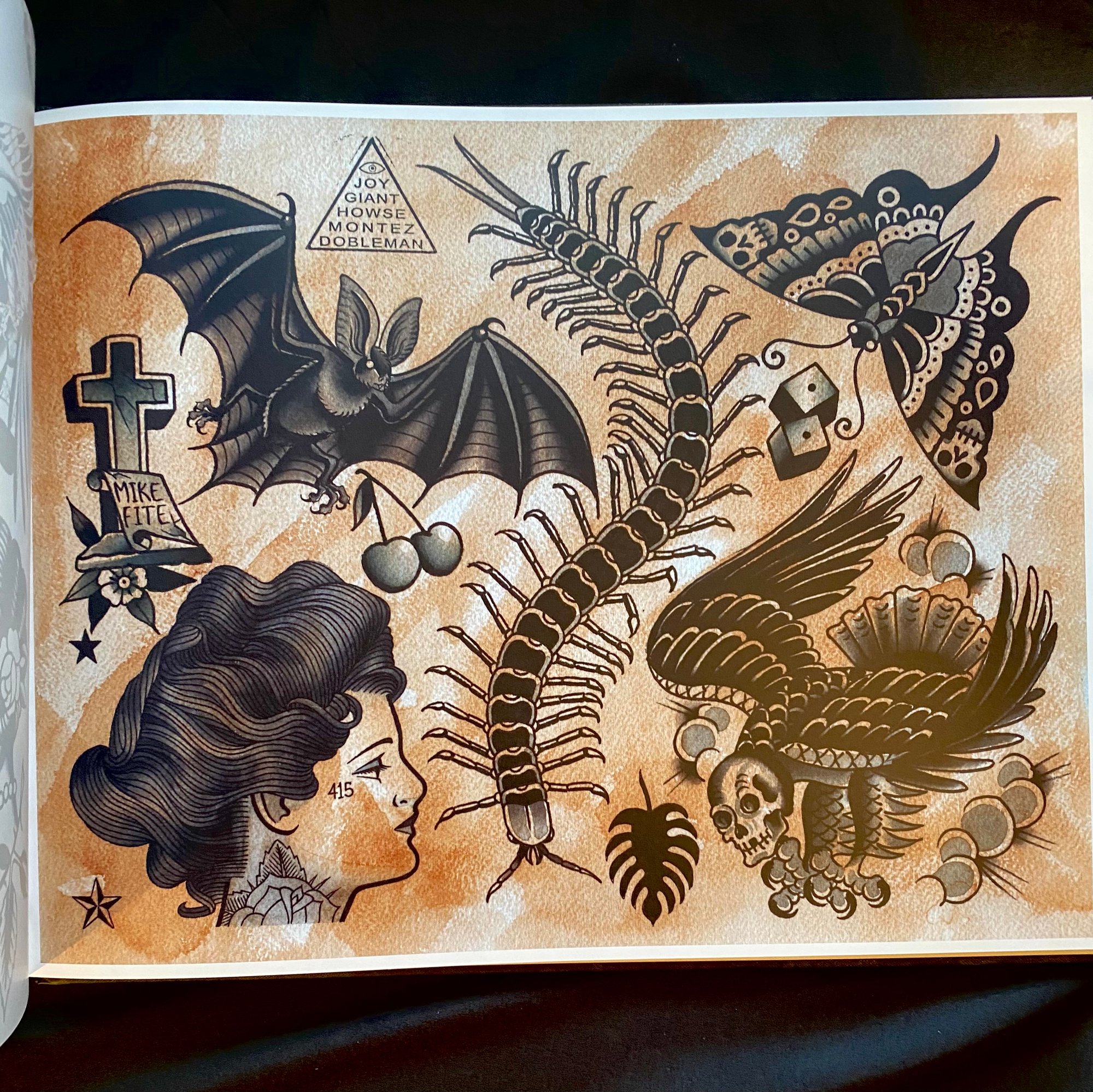 11 x 14 Hardcover , 30 sheets of incredible black work flash. Artist participating, Mary Joy, Mike Giant, Paul, Doberman, Matt Howse , Derek Montez. First time this book came out, it was a must have. Like a fool I ripped out pages and put them up as sheets of flash. I enjoyed them so much.